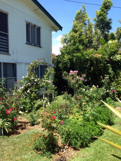 a lovely rose garden in the suburbs of Townsville demonstrating