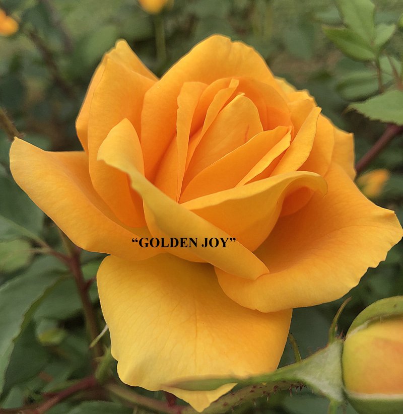 "GOLDEN JOY "A true gold rose for that golden celebration. A lively, modern coloured rose with bushy growth and excellent lasting colour with little fade. Flowers are good for picking. Foliage is glossy dark green. This rose is hardy and tough with excellent flower production every 8 weeks throughout the season. 1.2m x 1.2m. |