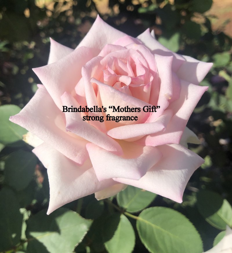 BRINDABELLA'S "MOTHER'S GIFT"TMThis is a perfectly formed, high centred rose in purest soft pink- perfect for mum's everywhere. Very strong rose perfume and a great picking rose with strong stems. Prolific flowerer with flushes coming every 6 weeks year round. 1.2m tall x 1m wide. Bred here at our nursery and well suited to all parts of the country. HIGHLY RECOMMENDED